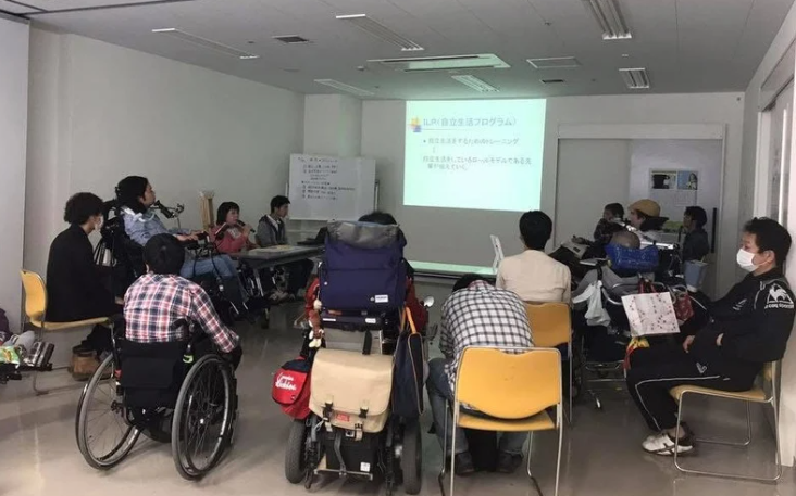 施設や在宅の閉鎖的な場所で暮らしてきた障害者が社会の中で自立生活をしていく時に、対人関係の作り方、必要な介助者との接し方、住宅、性について、健康管理、トラブルの処理方法、金銭管理、調理、危機管理、社会資源の使い方などを先輩の障害者から学ぶことができます。障害者が自立生活に必要な心構えや技術を学び、「障害者自身が力をつけていく場」です。